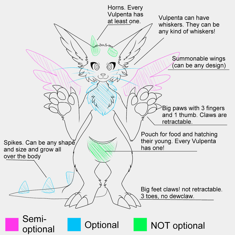 - Vulpenta cannot have extra limbs, body/tail maws etc.