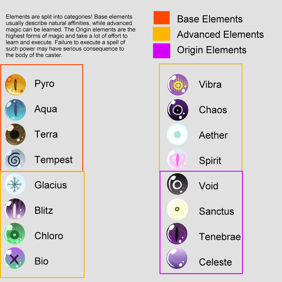 Magic abilitiesThere is a lot of magic elements that Vulpenta have. Some may not have been discovered yet! (make smth up if you want!) You can also go crazy with what abilities come with the elements!
